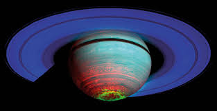 Cassini Huygens sensor spacecraft telescope explores Saturn with its rings and moons. Icy Enceladus attracts attention because of its intensely white surface. Geysers are seen coming out high into the atmosphere. From these ice plumes a global ocean is inferred deep within the moon.
