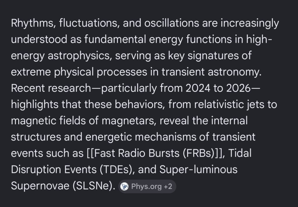 Emergence of deep rhythms is a fundamental energies function. These may be the power sources of the fluctuations of pulsars and magnetars. It is in these ways that oscillations come to underlie complex transient astronomical processes. These pulsing variations evolve with all the material of the universe.